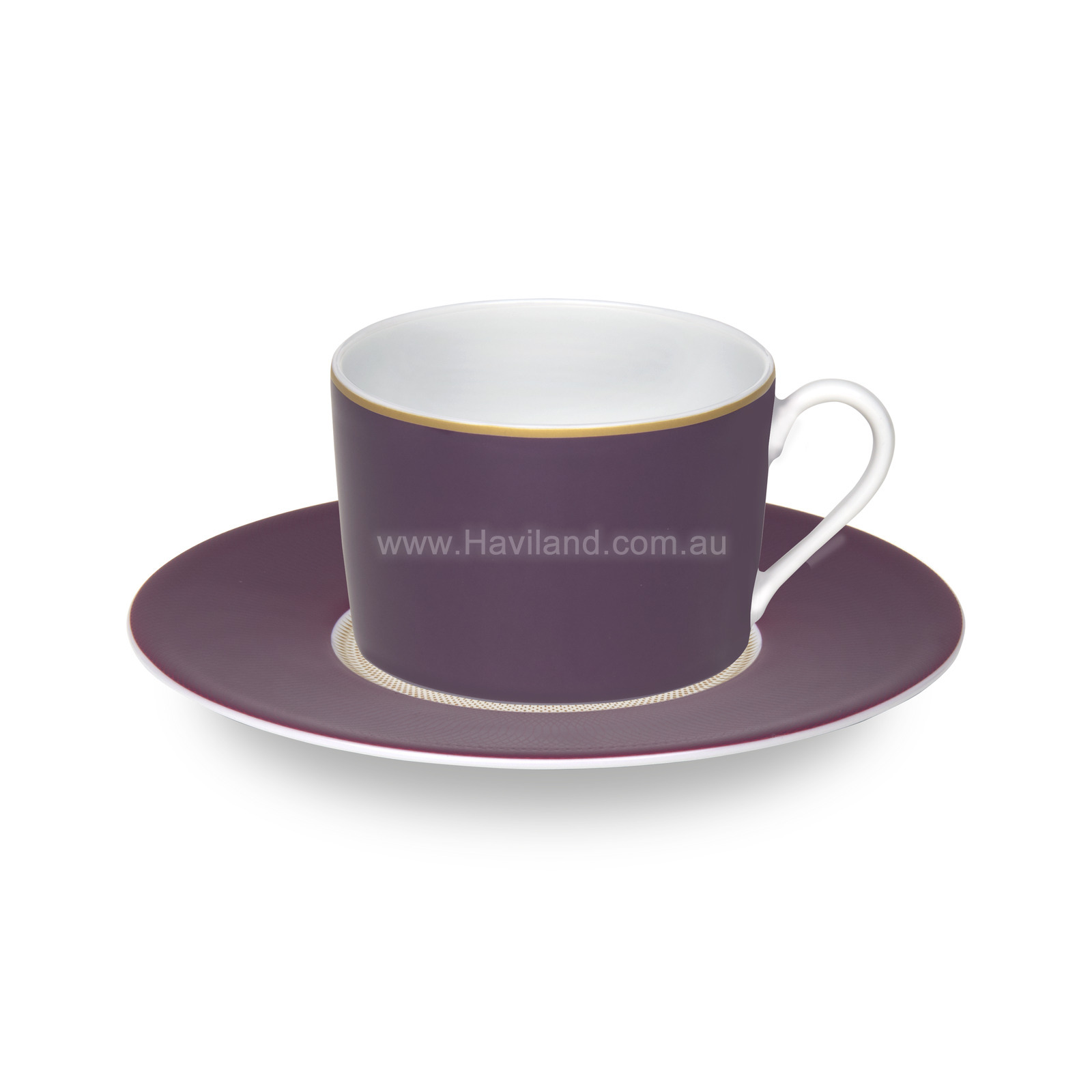 MAGNOLIA TEACUP AND SAUCER (FLAT AUBERGINE PATTERN) (AUBERGINE)