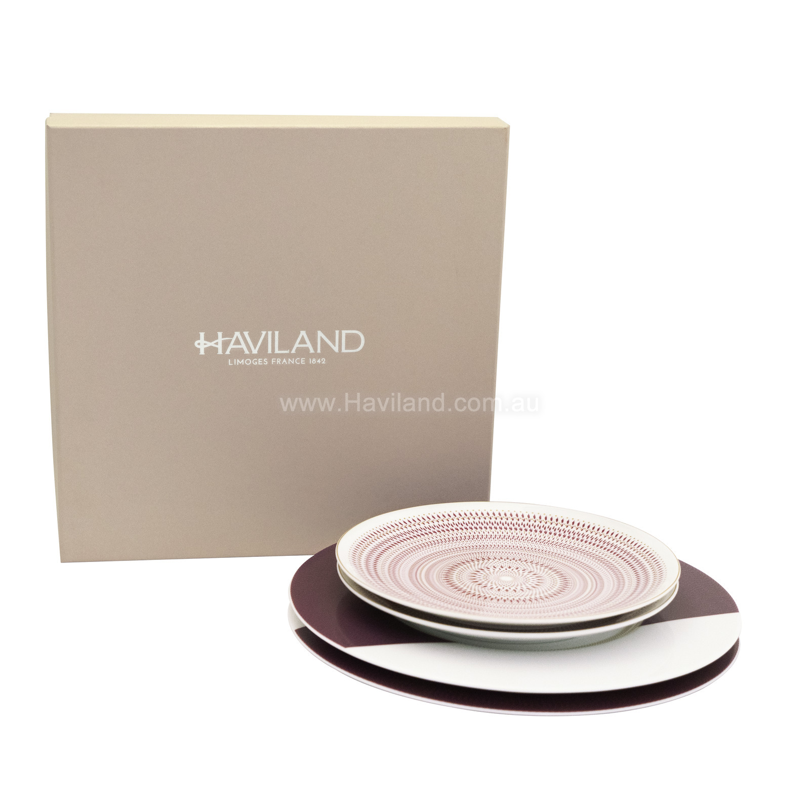 MAGNOLIA SET OF 2 DINNER 2 DESS PLATES (2 AUB DINNER 2 GEO DESSERT) (VIOLET)