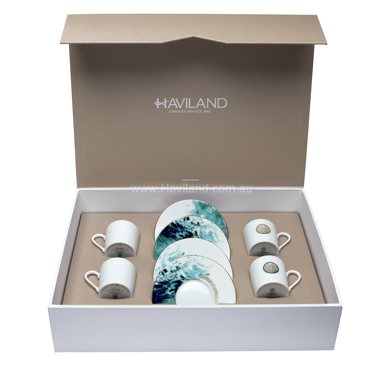 OCEAN BLEU SET OF 4 COFFEE CUPS SAUCERS (BLEU)