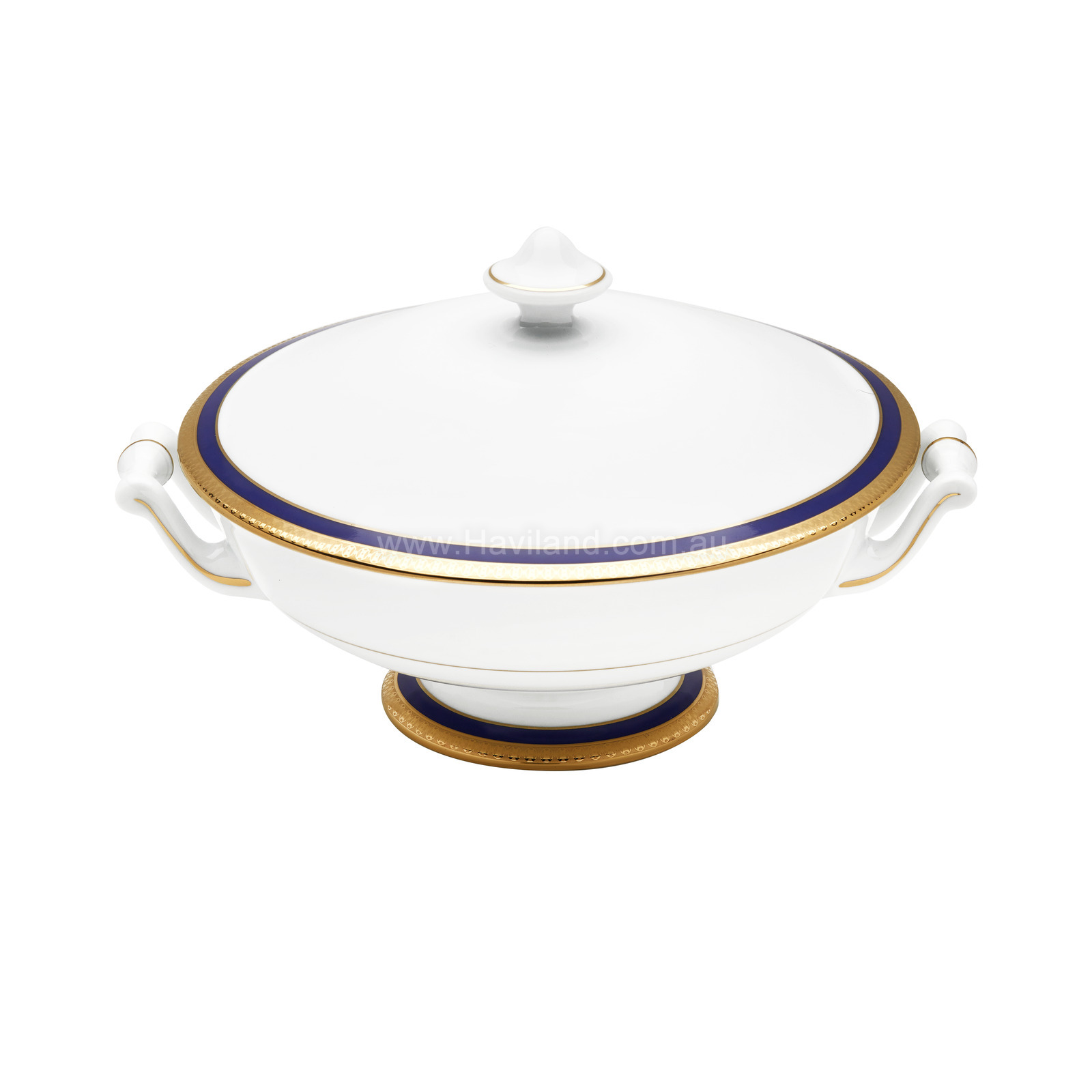 SYMPHONIE COVERED VEGETABLE DISH (WHITE BLUE GOLD)