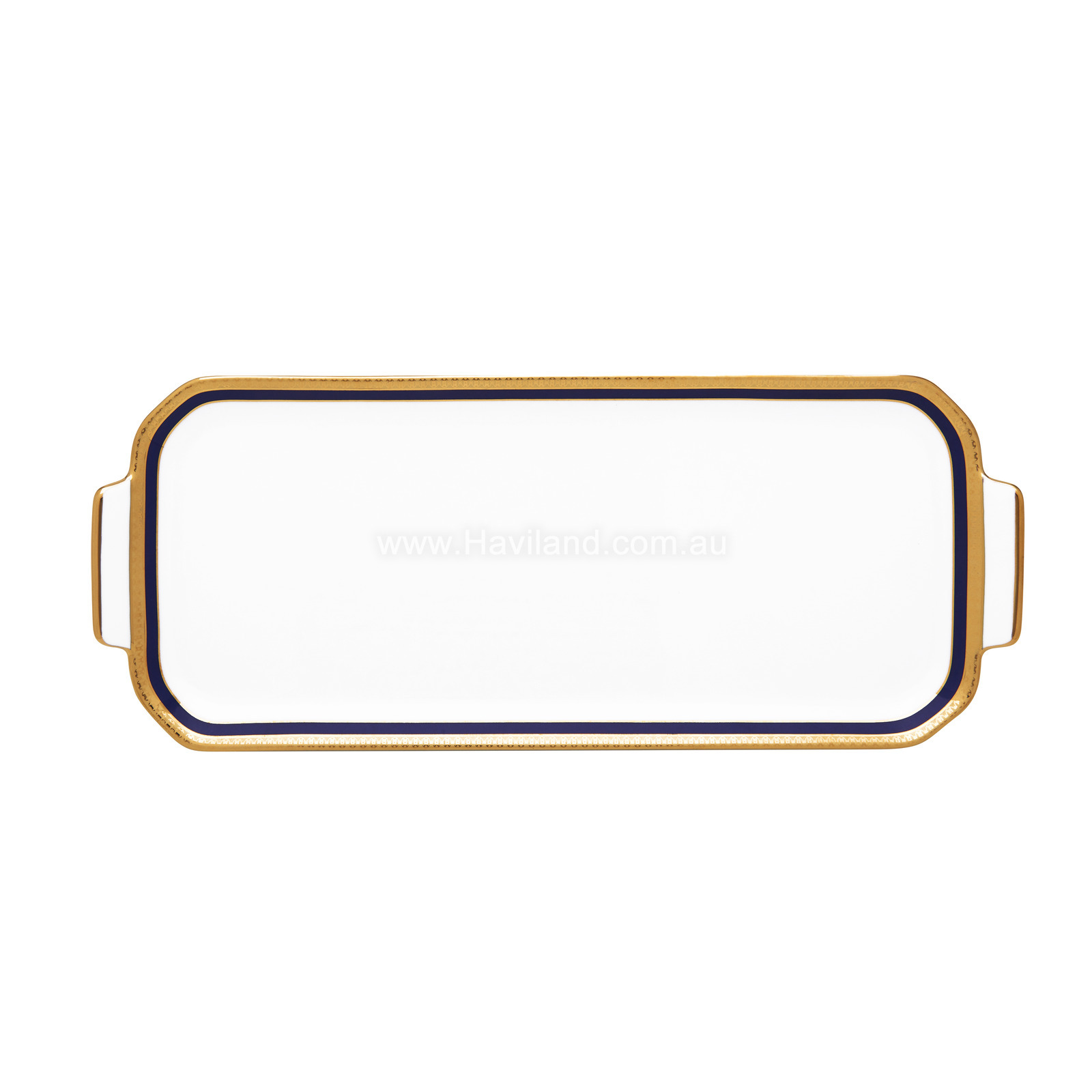 SYMPHONIE OBLONG CAKE PLATTER (WHITE BLUE GOLD)