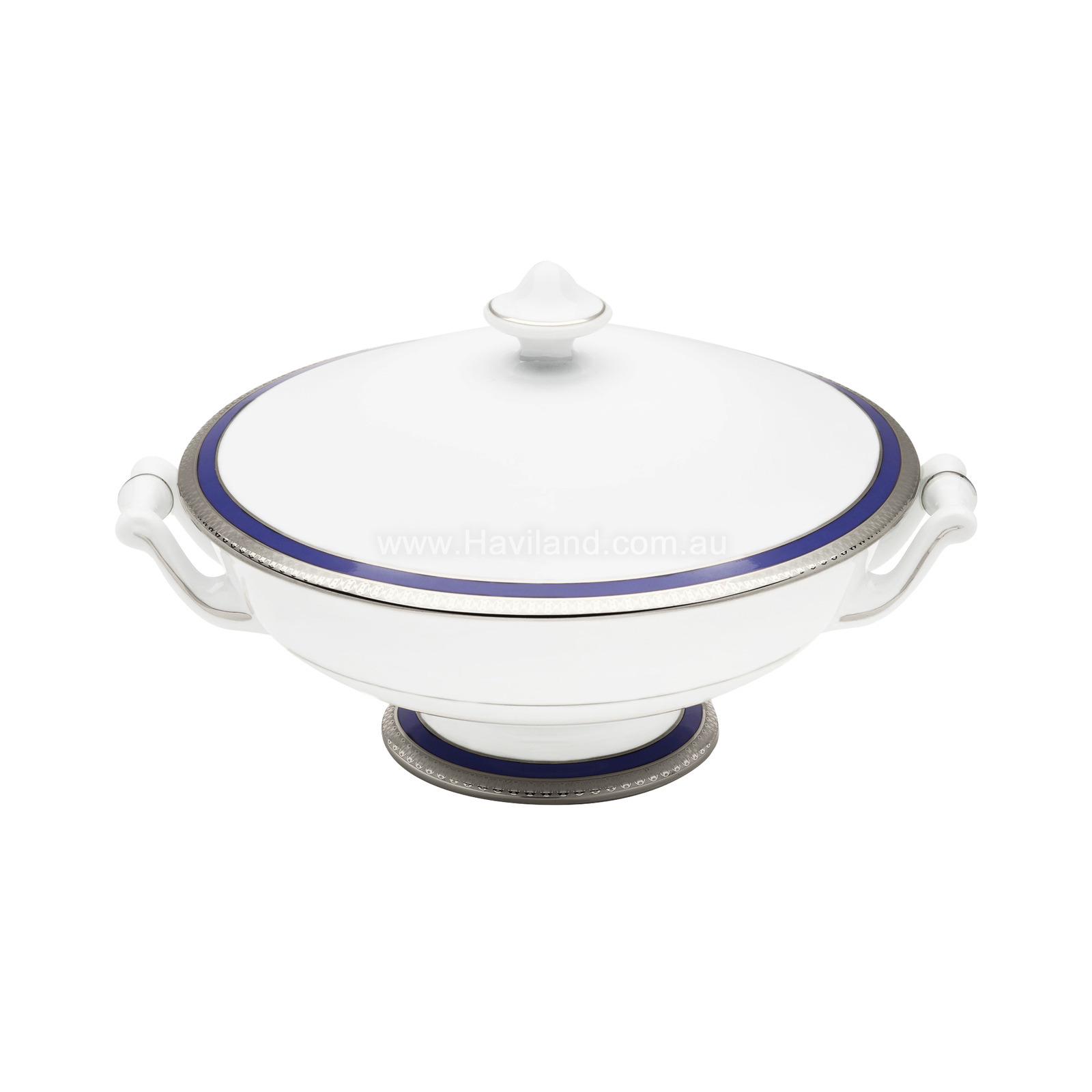 SYMPHONIE COVERED VEGETABLE DISH (WHITE BLUE PLATINUM)