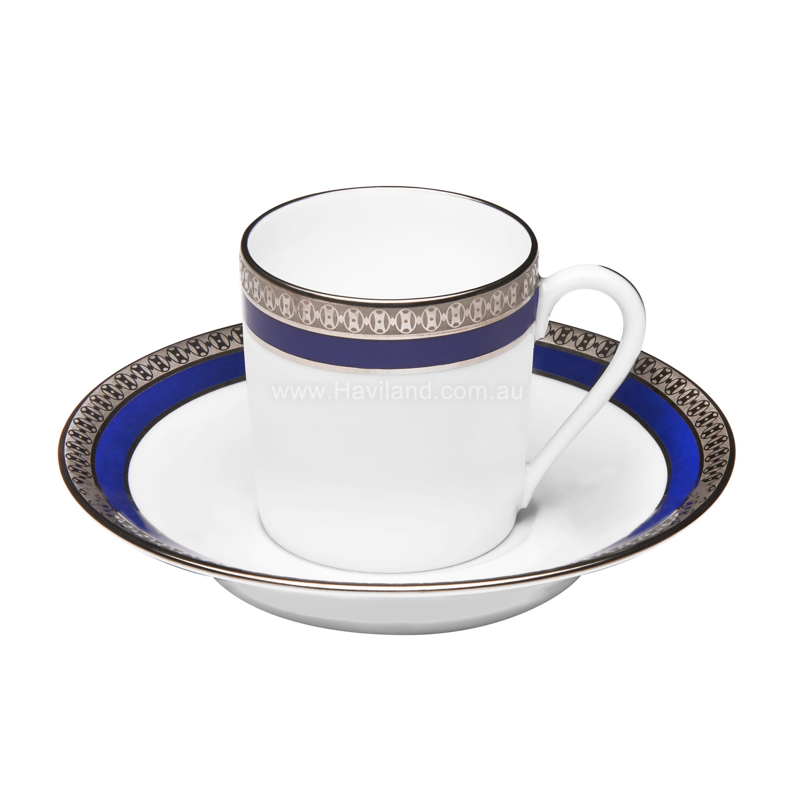 SYMPHONIE ESPRESSO CUP AND SAUCER (CYLINDRICAL) (WHITE BLUE PLATINUM)