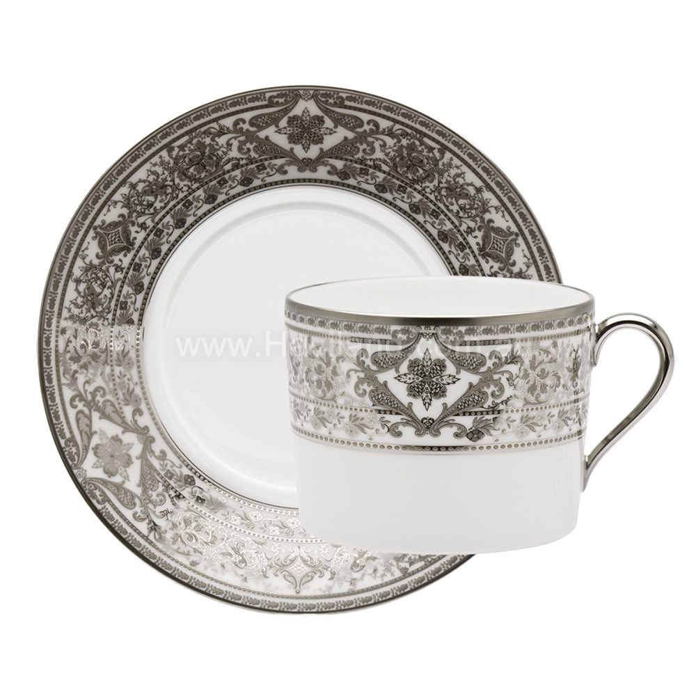 MATIGNON CAPPUCCINO CUP AND SAUCER (CYLINDRICAL) (PLATINUM WHITE RIM)