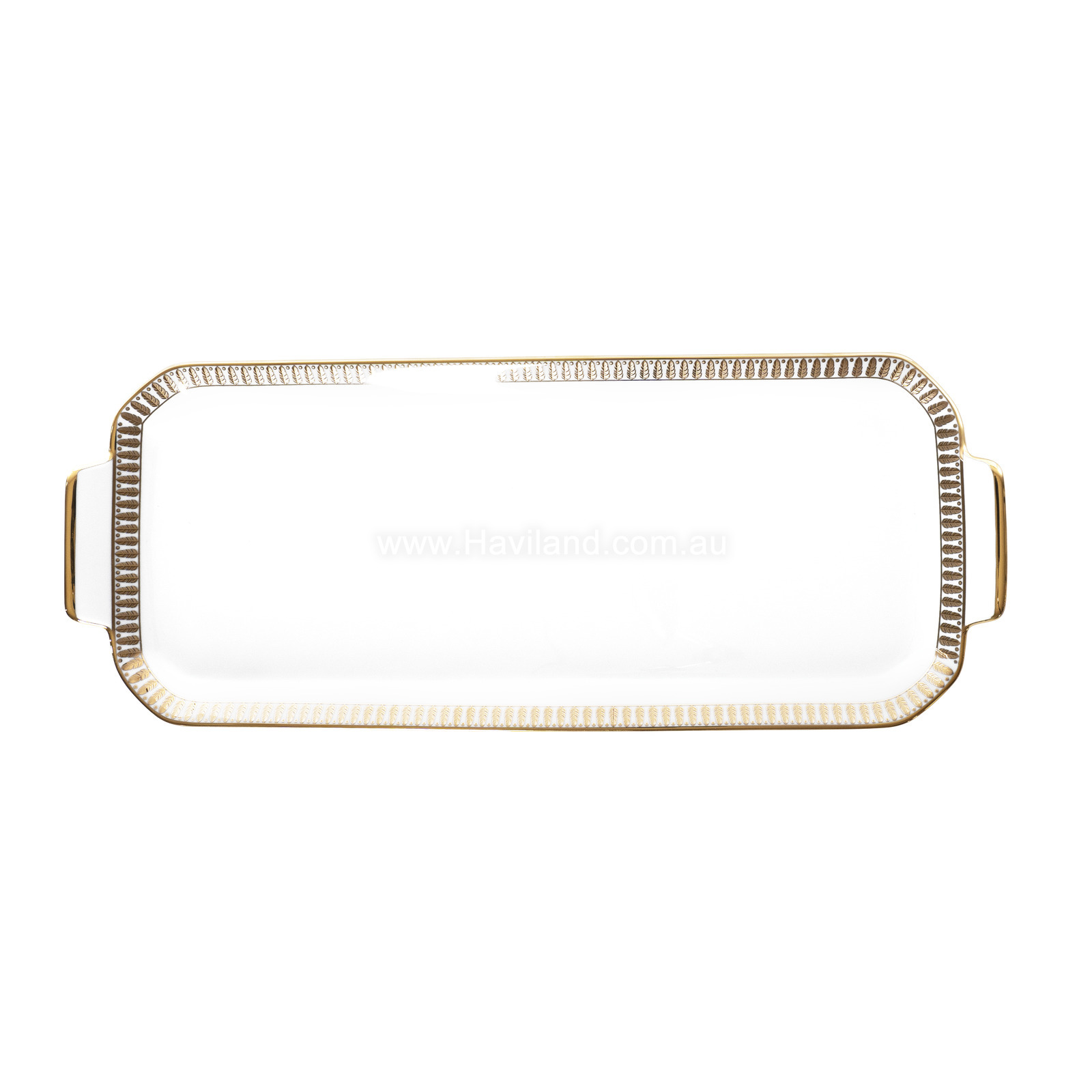 PLUMES OBLONG CAKE PLATTER (WHITE GOLD)