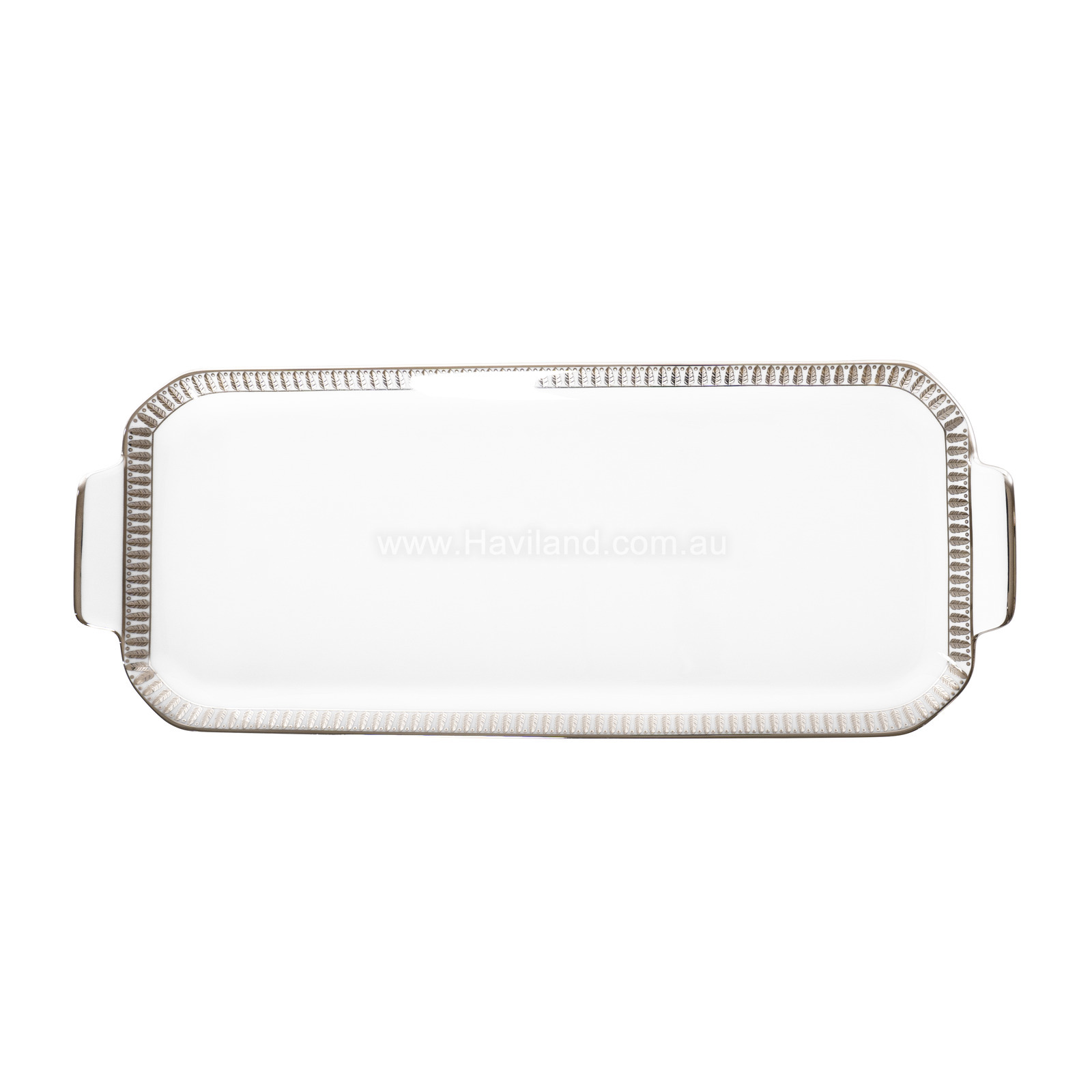 PLUMES OBLONG CAKE PLATTER (WHITE PLATINUM)