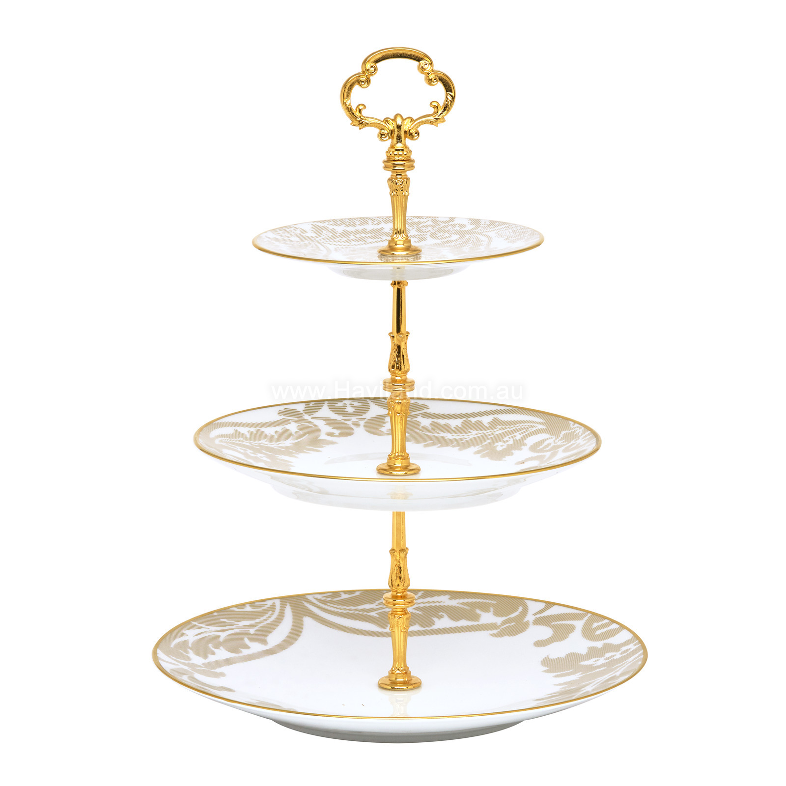DAMASSE 3 TIER CAKE PLATE (BLANC)