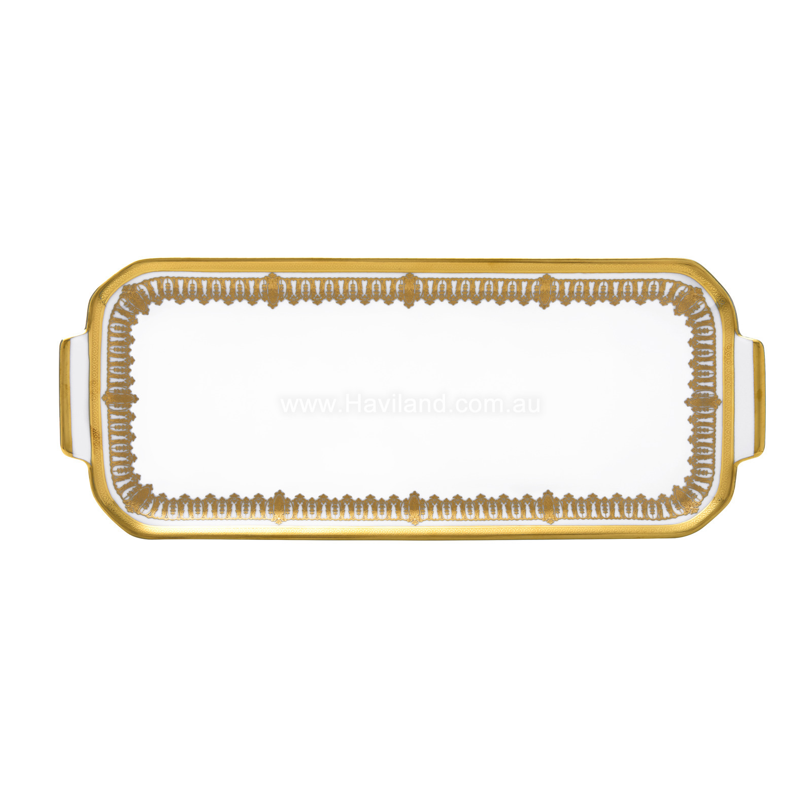 SAINT HONORE OBLONG CAKE PLATTER (GOLD WHITE RIM)