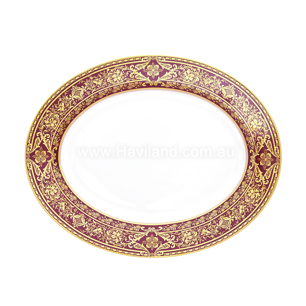 MATIGNON OVAL DISH (GOLD CHERRY RIM)
