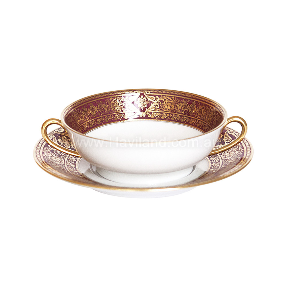 MATIGNON SOUP CUP AND SAUCER (GOLD CHERRY RIM)