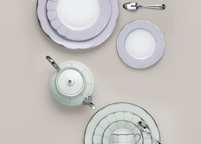 The Illusion collection is the fruit of a collaboration between Barbara Barry and Haviland. A renowned Product Designer and a consultant in branding and partnerships, Barbara Barry presents a pattern with summer pastel combinations of mint and lavender. The softness of the colored background highlights the geometric pattern, creating an optical illusion, and the filet painted by hand accentuates the movement. The plates seem faceted and highlight the know-how of the Maison Haviland and its mastery of patterns.
