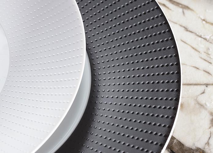 The Maison Haviland presents a pattern that awakens our senses by seducing us with its touch. Faithful to its codes, Haviland proposes for the first time, a tone-on-tone pattern full of finesse. These small drops dancing on the porcelain are delicate to the sight and to the touch. Revealing a contemporary aesthetic with its mat finish, this white collection invites us to discover a beautiful perspective of white on white. This monochrome work, achieved by fine dewdrops, offers a service of 11 pieces. With this collection, Haviland combines with perfection, rock inspirations with the universe of gastronomy. “La Rosée” strongly establishes itself in the universe of Haviland and affirms the talents and exceptional know-how of the craftsmen of the Maison.