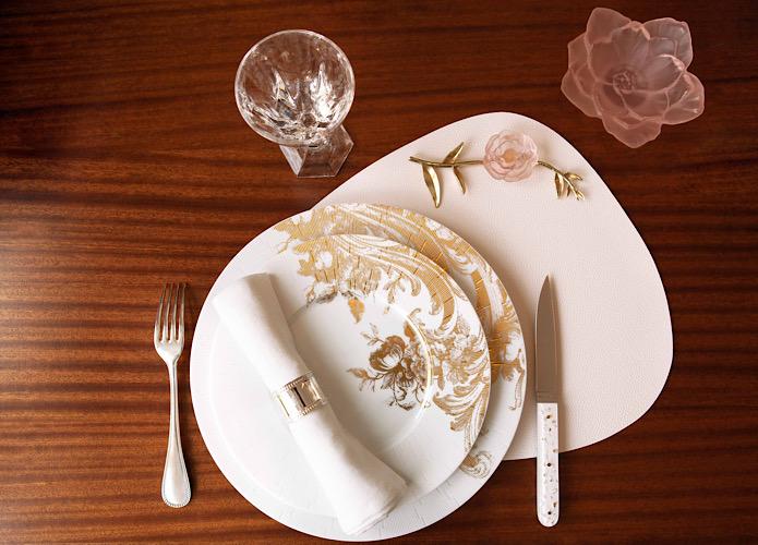 The Maison Haviland presents Stanislas, a dinner service with a harmonious combination of acanthus leaves and peonies. In reference to one of the most beautiful squares in Europe: Place Stanislas, located in Nancy with its famous 18th century gilded wrought iron gates adorned with acanthus leaves, Haviland has chosen to revisit this essential motif of French architectural heritage with an elegant and refined tableware collection. Available in a complete range in gold or in gray blue, the Maison imagined this new collection of harmonious elegance for your tables and decorations. Each element, which has been handcrafted by the artists of the Manufacturer, blends perfectly with the iconic Infini engraving and conveys a timeless quality. The rhythm imposed by Infini brings a real dynamism to the collection. A real technical achievement, the Limoges Manufacturer affirms its resolutely timeless style by imagining a pattern on an engraved white porcelain piece. Once again, Haviland confirms its authentic DNA of unique tableware with the Stanislas collection, which gracefully illustrates its know-how of excellence.